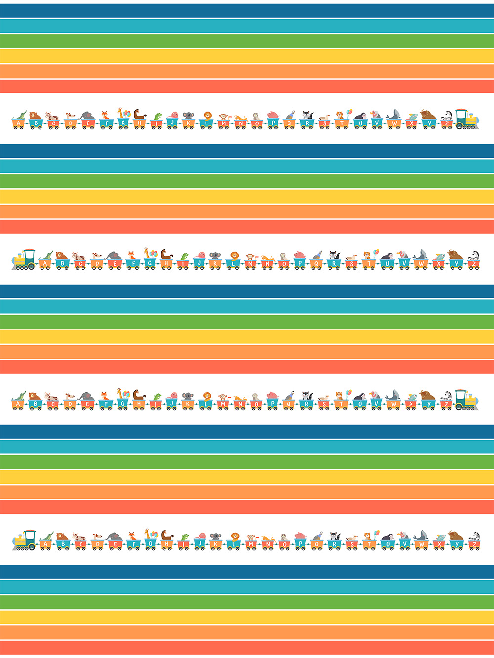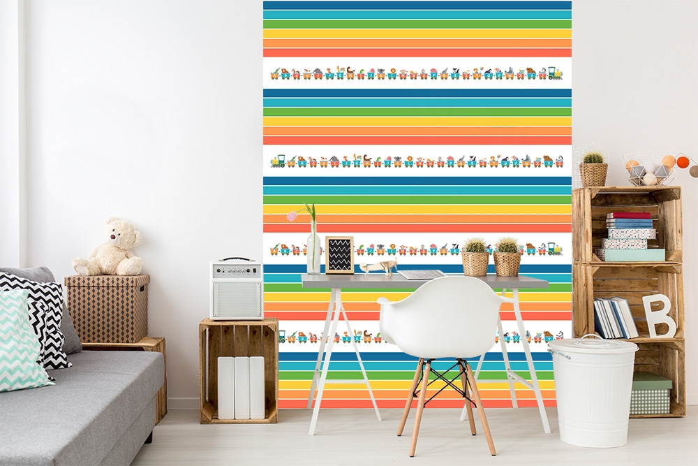 Kinderzimmer Streifentapete - Bunte Streifen mit dem ABC auf Eisenbahn