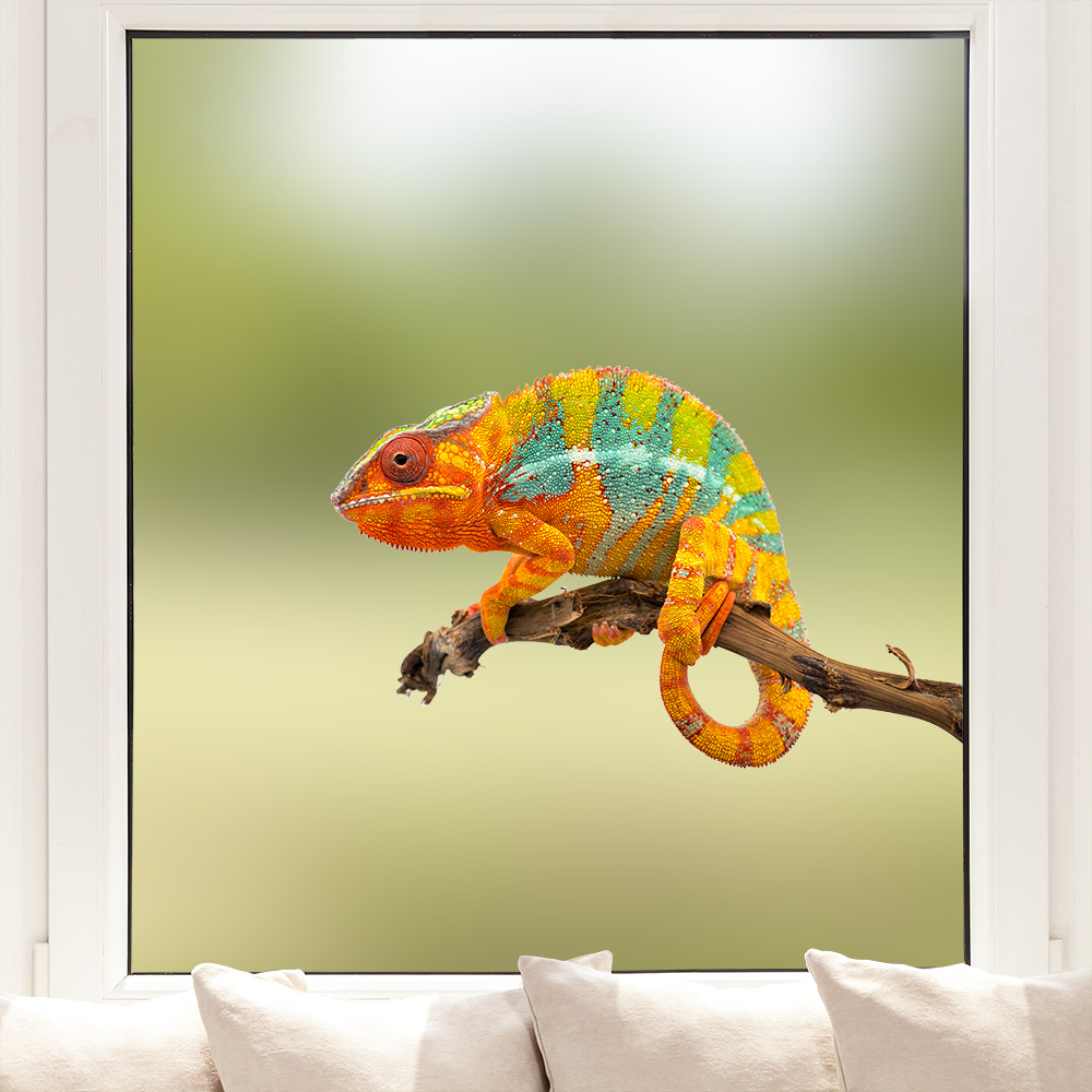 Ein putziges Chamäleon auf einem Ast als hochwertige Fenstersticker im Pixblick Onlineshop. Chamäleons haben sicher für viele eine große Faszination. Ihr Äußeres ist wie ein großer Spezialeffekt. Sie können Ihre Hautfarbe an Ihre Umgebung anpassen. Die ist ein perfekter Schutz vor Feinden.