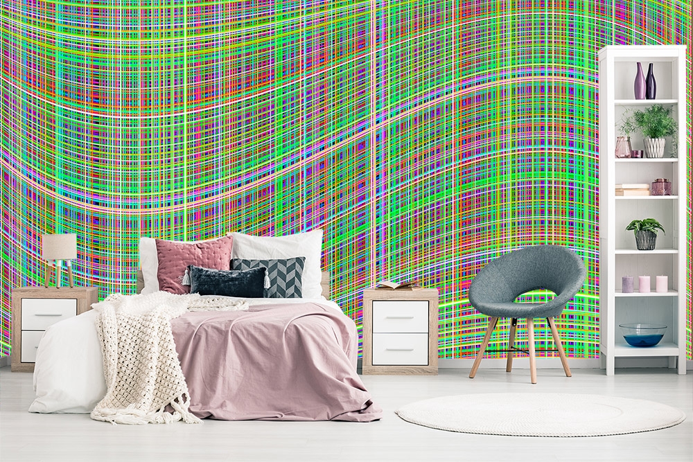 Preview: Fototapete 90er Jahre Design mit Wellen und vertikalen Linien