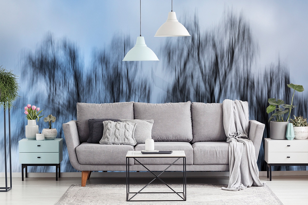 Preview: Vlies-Fototapete verschwommene Bäume bei trübem Winterwetter