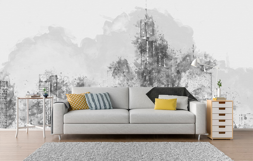Aquarell von Frankfurt am Main in Graustufen auf Fototapete. Das Bild bringt Ihnen die Hochhäuser der Frankfurter Skyline in Ihre Räume. Eine schon fast abstrakte Malerei von Frankfurt. Das Motiv passt in Büros mit Bezug zu Frankfurt. Dort kann es Meetingräume, Büros oder Eingangsbereiche die Wände schmücken. Auch passt es in Lofts, Cafes, Bars, Restaurants oder Lounges. Natürlich ist es auch als Wanddekoration für die privaten Wohnräume geeignet. In Wohnzimmer, Schlafzimmern oder in Arbeitszimmern ergibt es eine stilvolle Wandgestaltung.