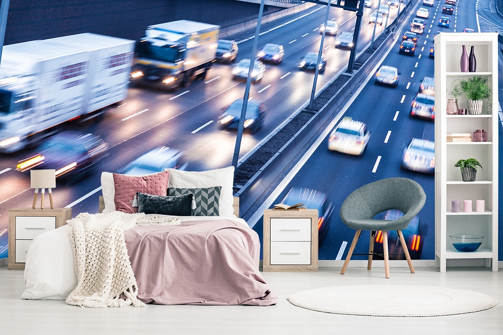 Die Berliner Stadtautobahn mit Autos und LKWs auf hochwertiger Fototapete. Dieses urbane Motiv vermittelt eine stimmungsvolle Ruhe. Fließender Verkehr auf der Autobahn in Berlin ohne die störenden Geräusche der Autos in der abendlichen Dämmerung. Die blaue Stimmung des Bildes strahlt Ruhe und Entspannung aus. Auch wenn dies im Kontrast zum eigentlich stressigen Ort der Autobahn steht. Ein inspirierendes Motiv aus einer Großstadt auf Wandtapete. Diese Tapete könnte in den Geschäftsräumen von Logistikern, Straßenbauern, Autobahnbauern oder anderen Baufirmen seinen Platz finden. Auch für Unternehmen für Verkehrstechnik, Verkehrsplanung oder anderen Verkehrsbetrieben bzw. Verkehrsunternehmen ist diese Tapete die perfekte Wandgestaltung. Sie können diese selbstverständlich auch in den privaten Wohnräumen nutzen. Das Motiv kann durchaus auch in Schlafzimmern stimmungsvoll das Raumambiente in den Abendstunden oder den Morgenstunden sein.
