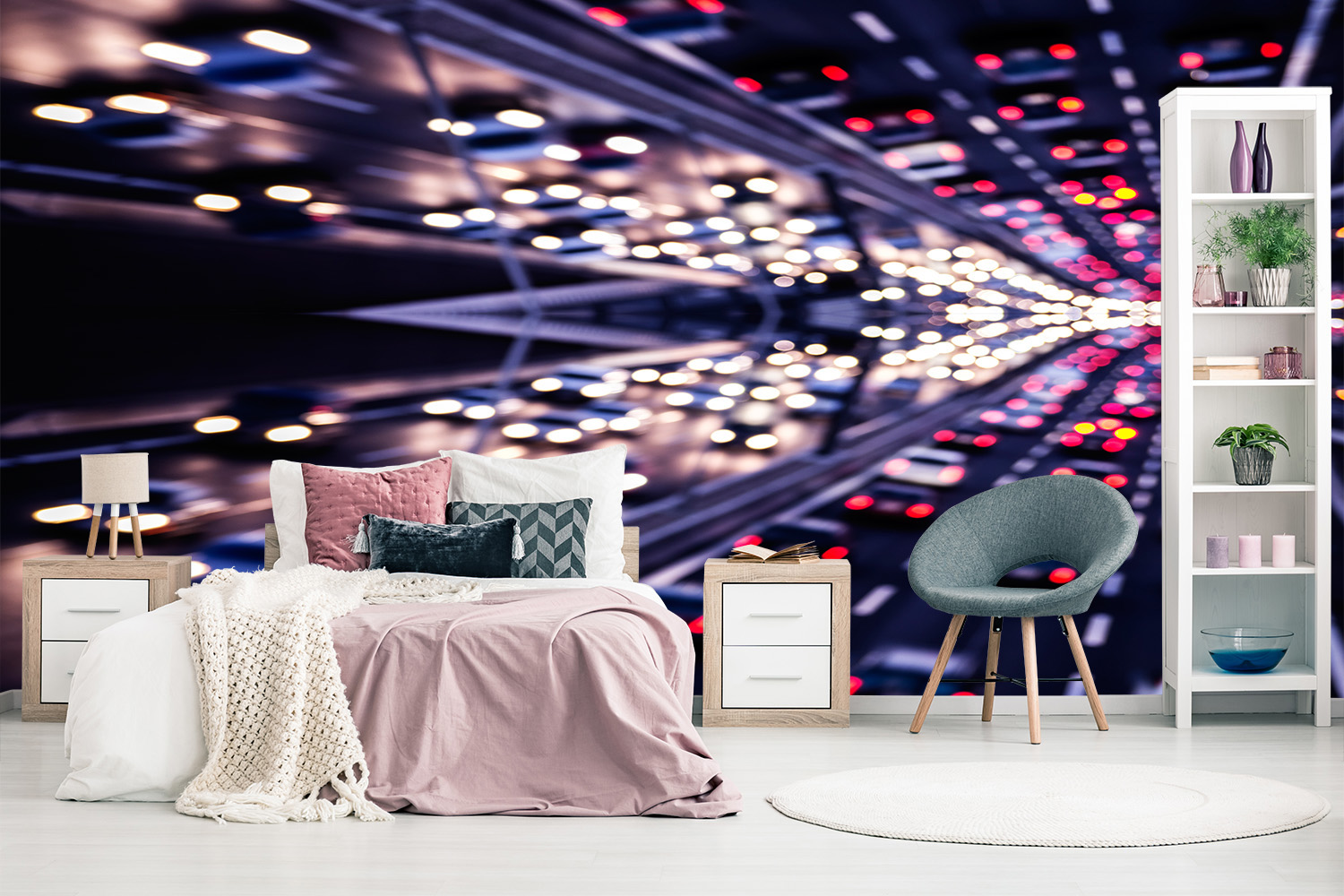 Preview: Vlies-Fototapete verschwommene Lichter einer Autobahn mit Spiegelung
