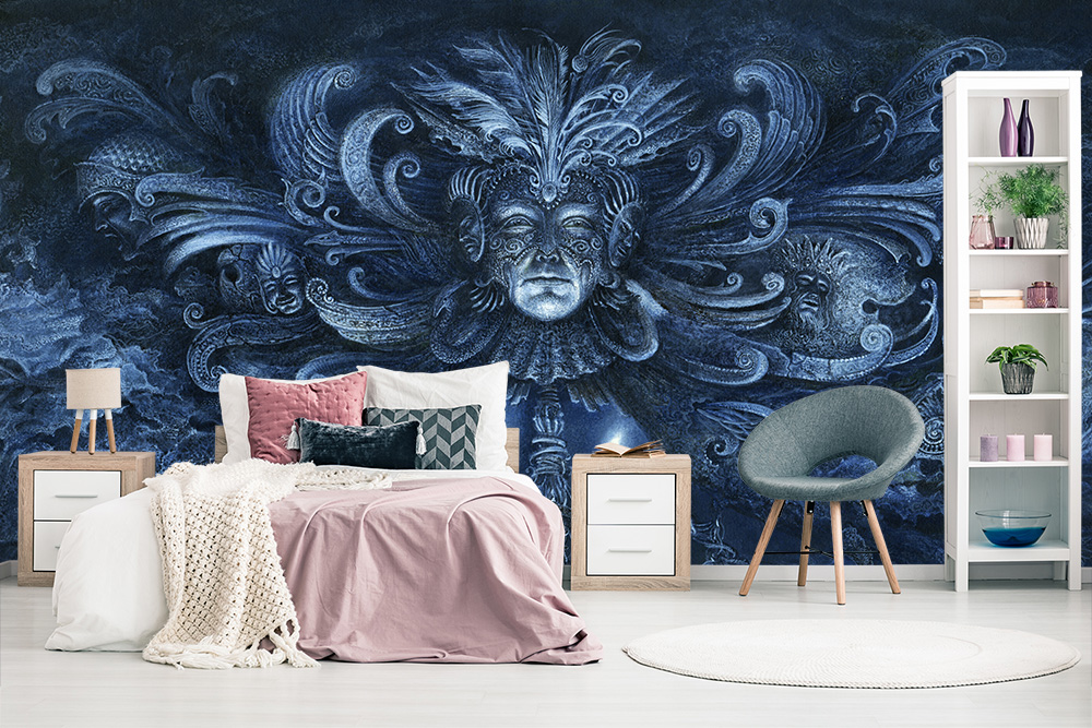 Preview: Vlies-Fototapete große Figur im Barock-Stil in einem Schlafzimmer