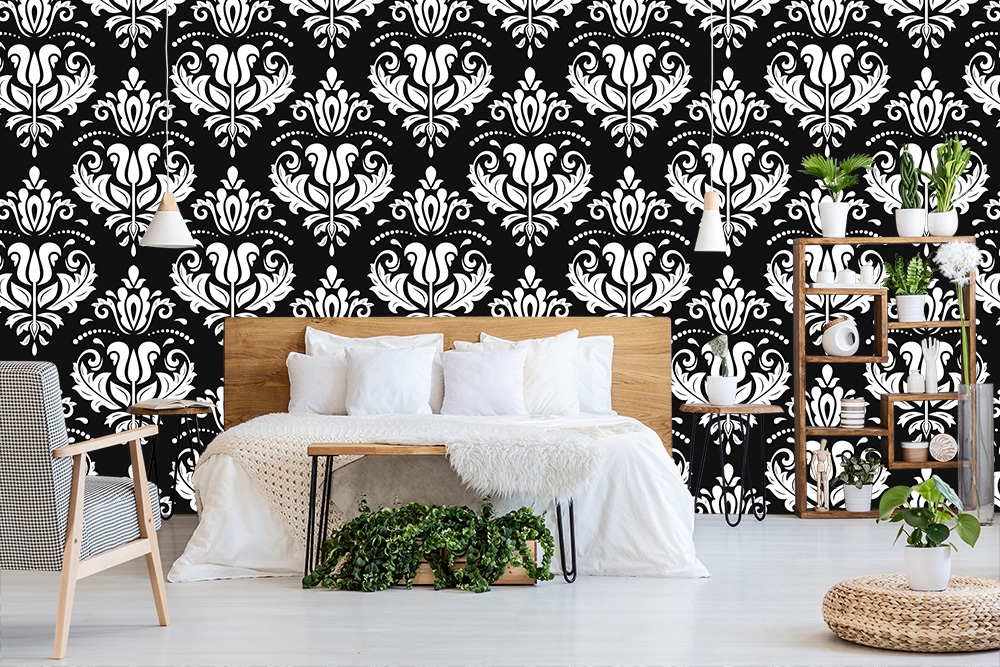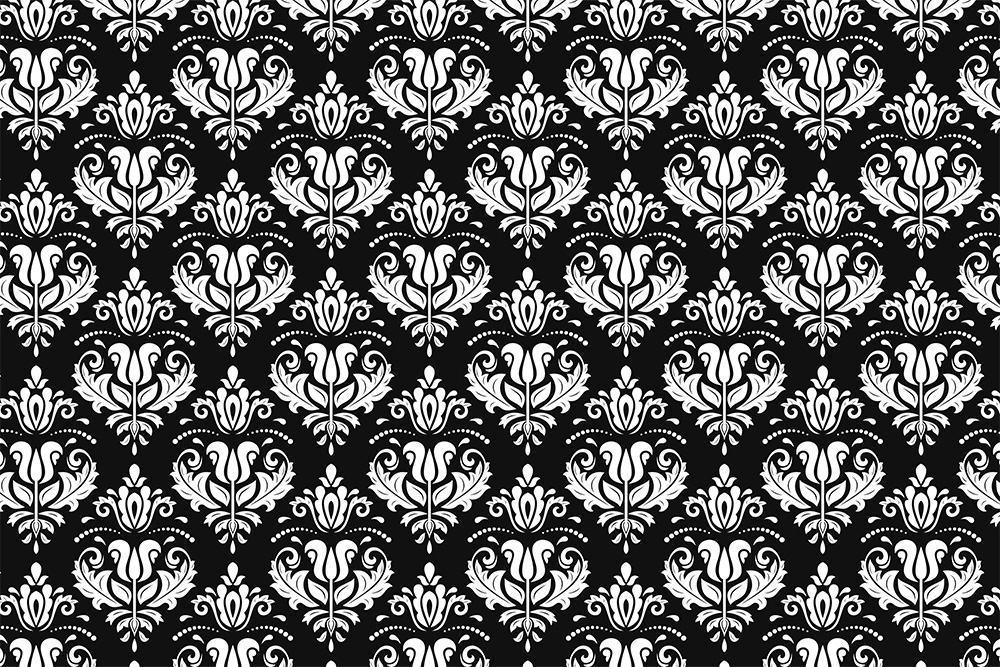 Mustertapete Barock-Ornamente im Schwarz-Weiß-Design