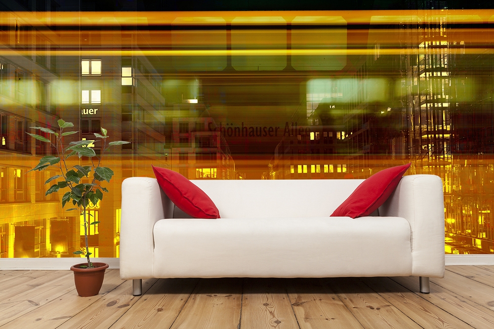 Preview: Fototapete Collage mit U-Bahn in Berlin bei Nacht