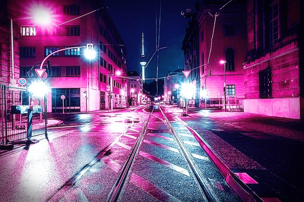 Fototapete Straßenbahnschienen in einer Straße von Berlin