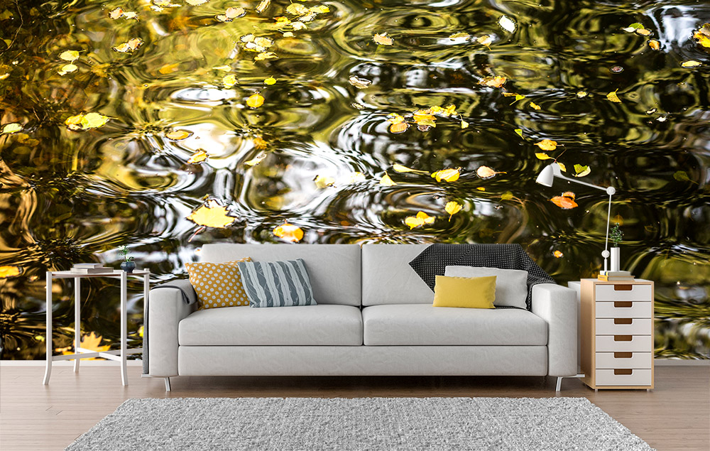 Preview: Vlies-Fototapete herbstliche Blätter schwimmen auf einem See