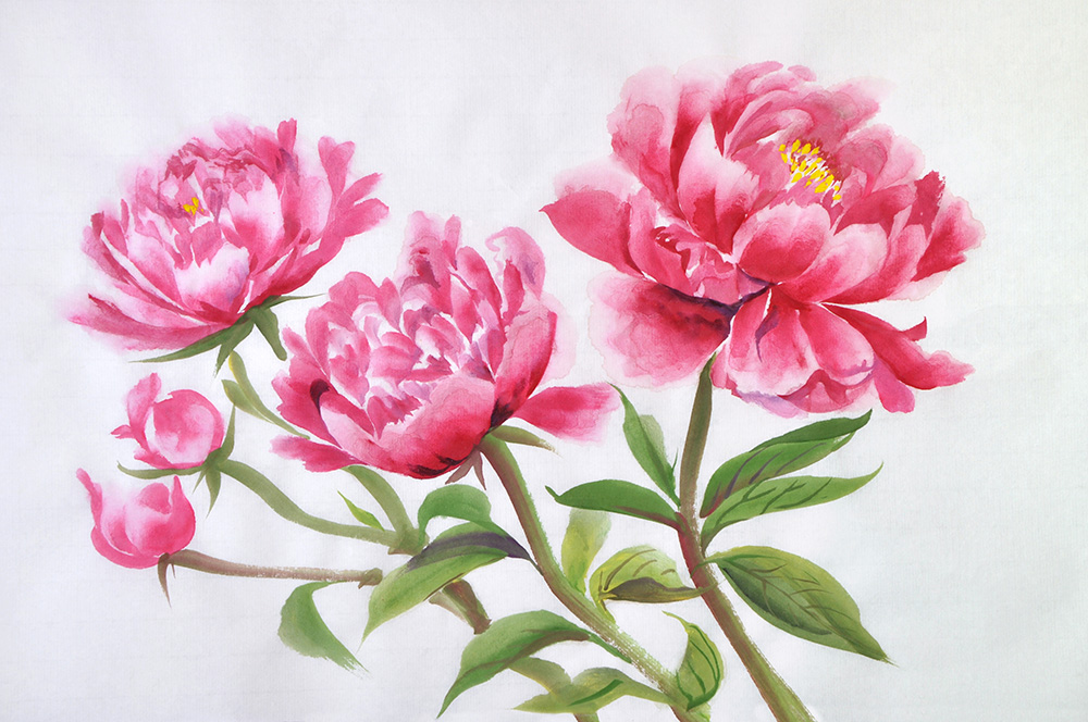 Fototapete Pfingstrosen in Rot als Aquarell