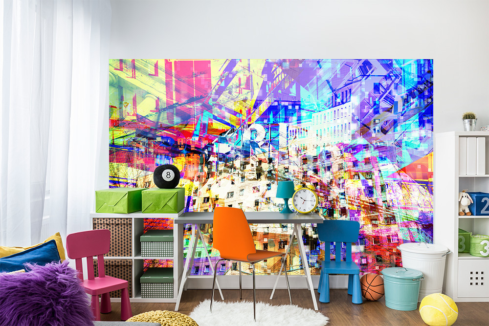 Fototapete aus Vlies mit einer Berlin-Collage in bunten Farben