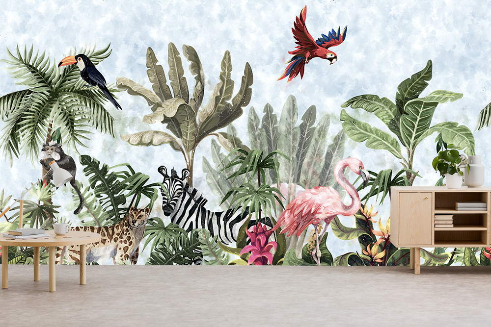 Preview: Fototapete Tiere zwischen Palmen im Dschungel