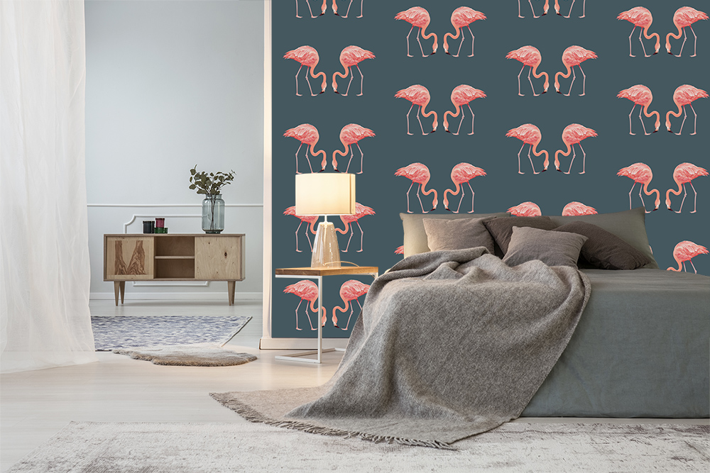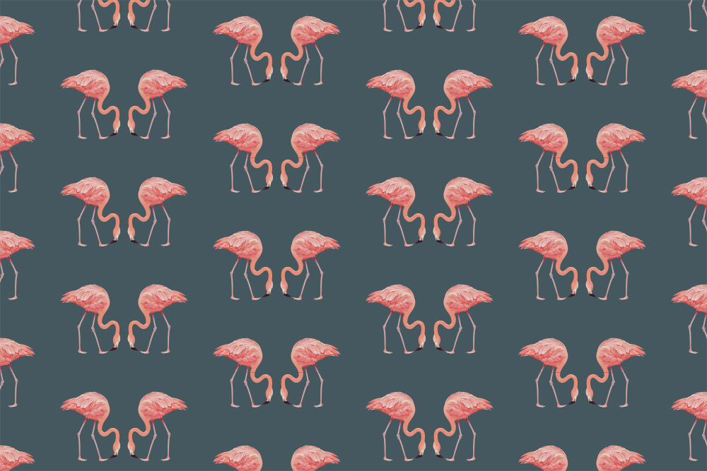 Preview: Vlies-Fototapete Muster aus Flamingos auf grauem Hintergrund