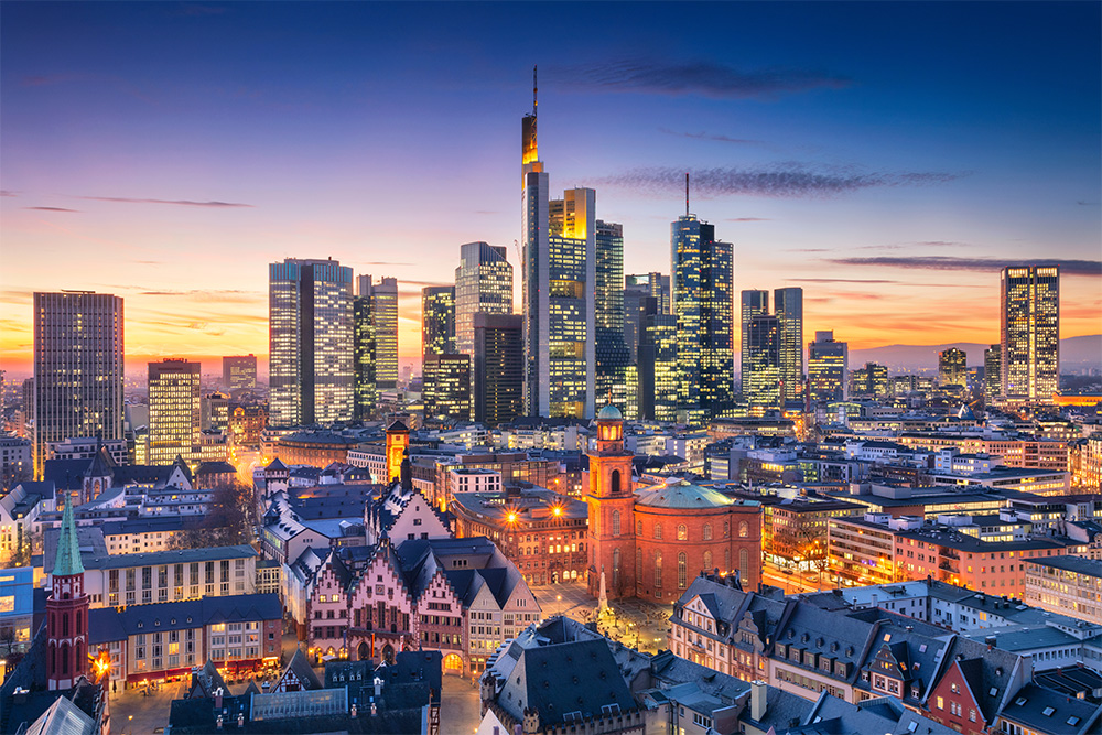 Fototapete Hochhäuser in Frankfurt am Main am Abend