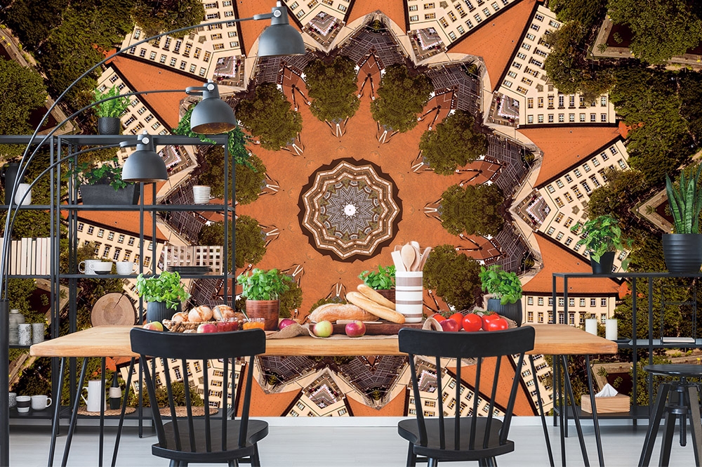 Preview: Vlies-Fototapete kaleidoskopische Darstellung von Häusern in Berlin im Esszimmer