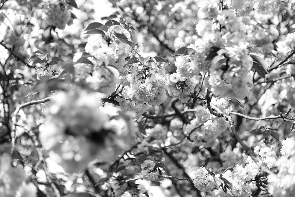 Fototapete japanische Zierkirsche in Schwarzweiß
