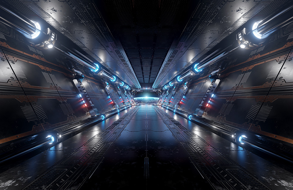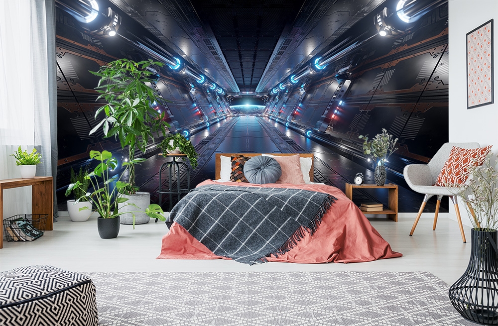 3D-Fototapete dunkler Korridor im Raumschiff