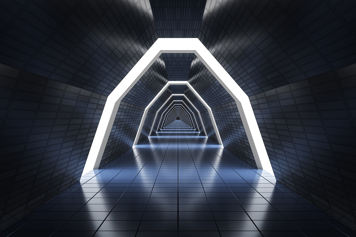 3D-Fototapete langer futuristischer Korridor im Raumschiff