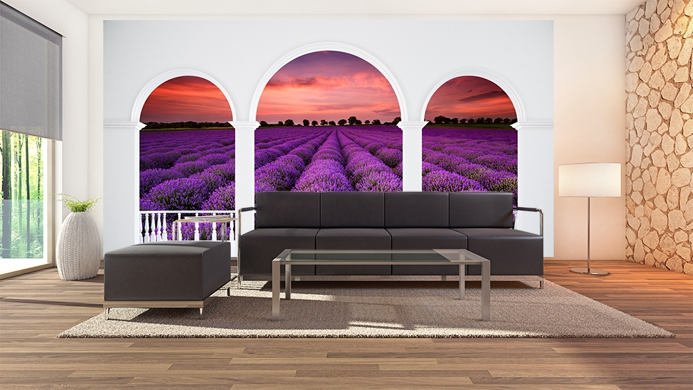 Lavendelfeld auf Fototapete auch ohne Balkon bestellen.