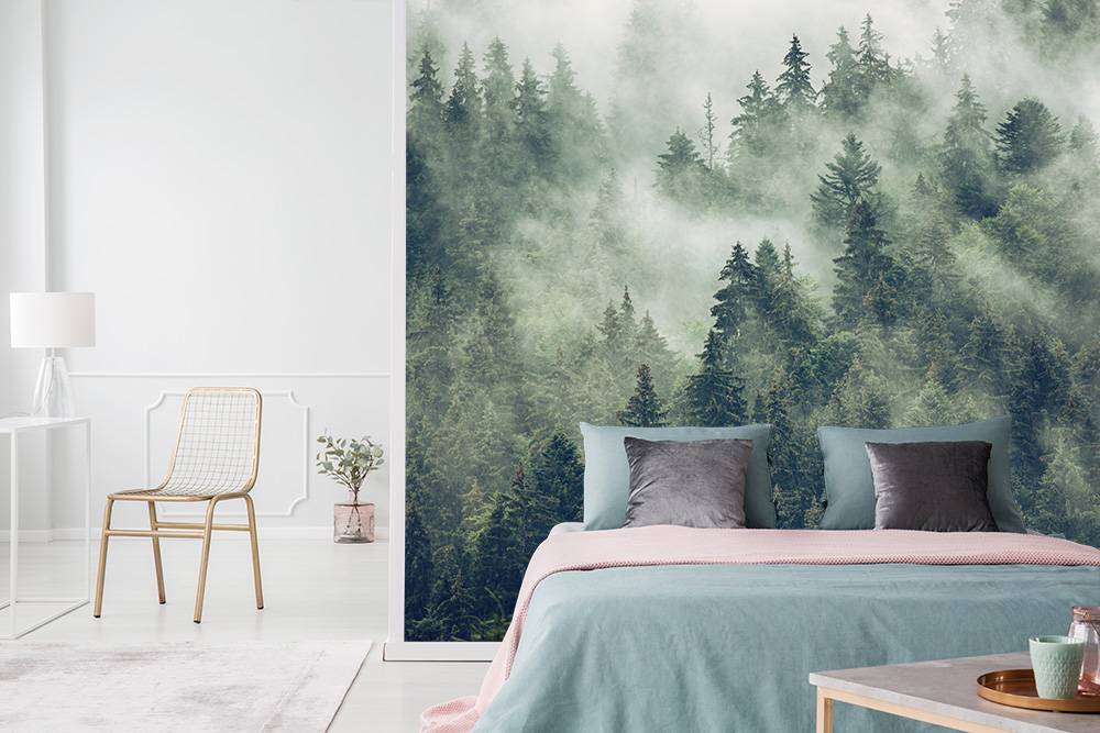 Fototapete Bäume im Nebel in den Bergen
