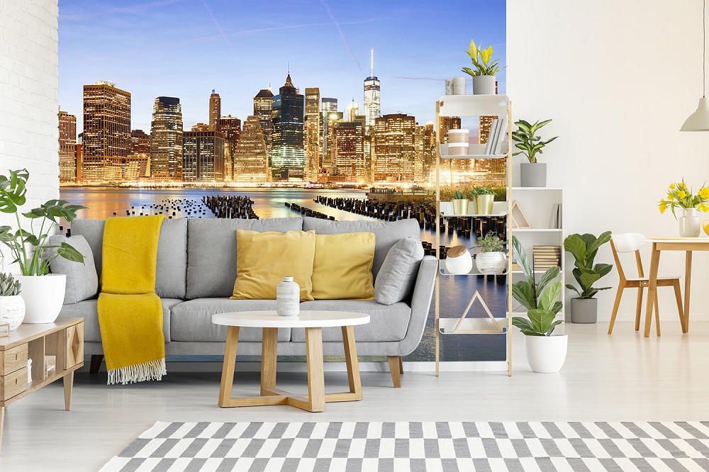 Preview: Badezimmer-Fototapete Skyline von New York in den frühen Morgenstunden