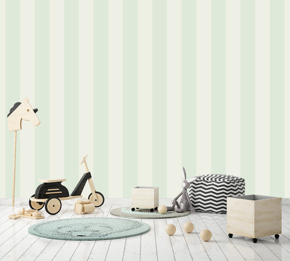 Streifentapete aus Vlies mit hellgrünen Streifen im quadratischen Format