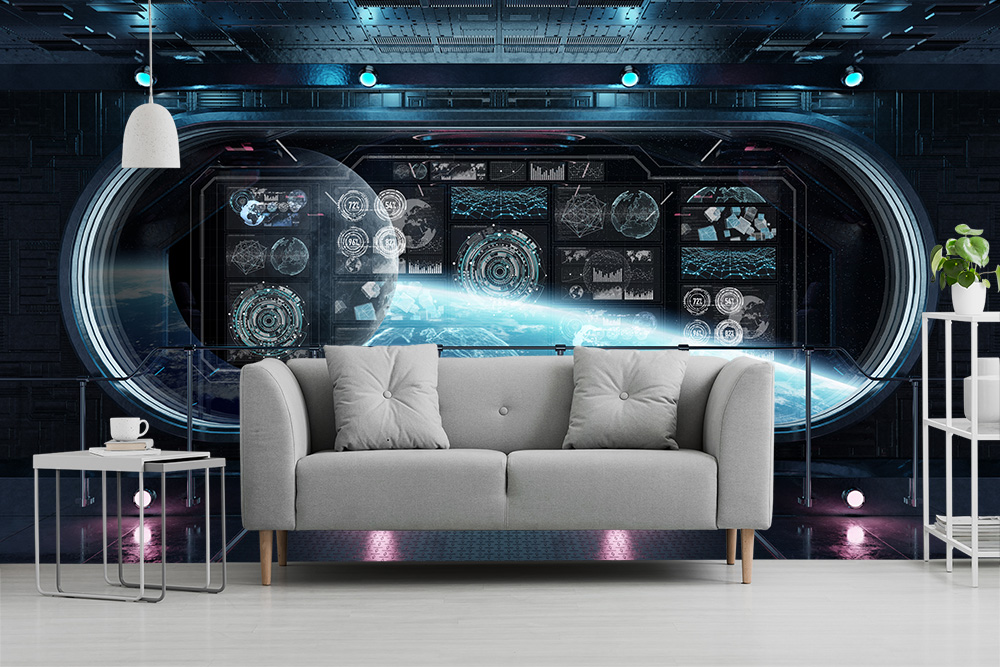 Futuristische Fototapete mit einem Raumschiff aus der Zukunft