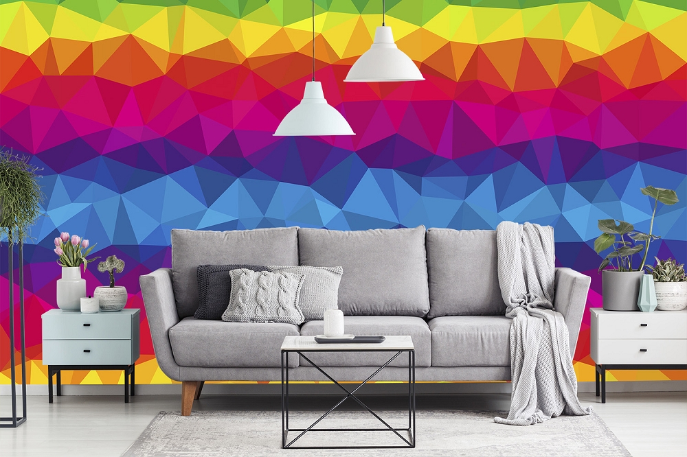 Preview: Fototapete Polygonmuster mit regenbogenähnlichen Farben