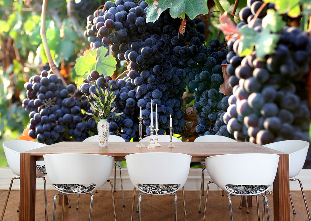 Fototapete rote Weintrauben auf einem Weinberg