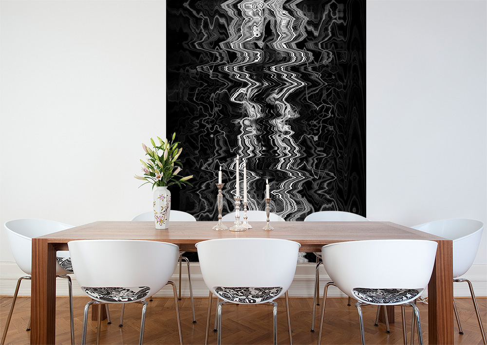 Preview: Vlies-Fototapete gezackte Schwingungen in Schwarzweiß in einem Esszimmer