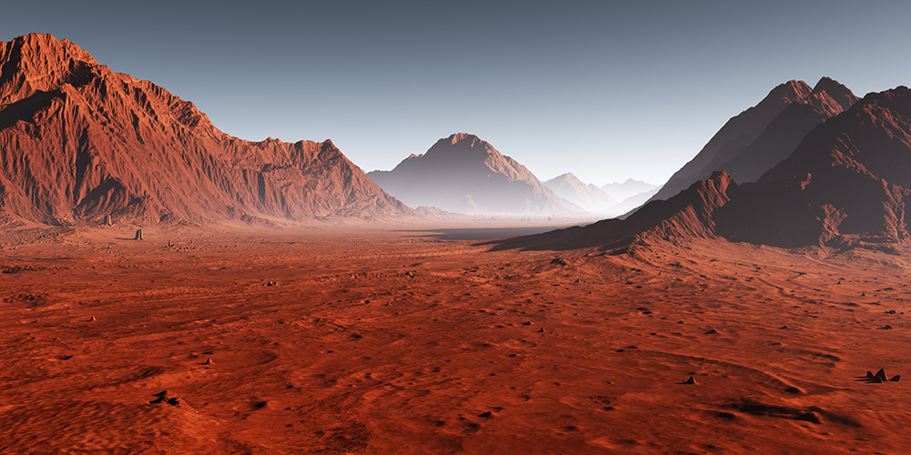 Fototapete Berglandschaft auf dem Mars bei Sonnenaufgang