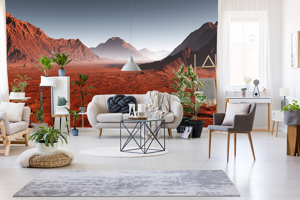 Preview: Fototapete Berglandschaft auf dem Mars bei Sonnenaufgang