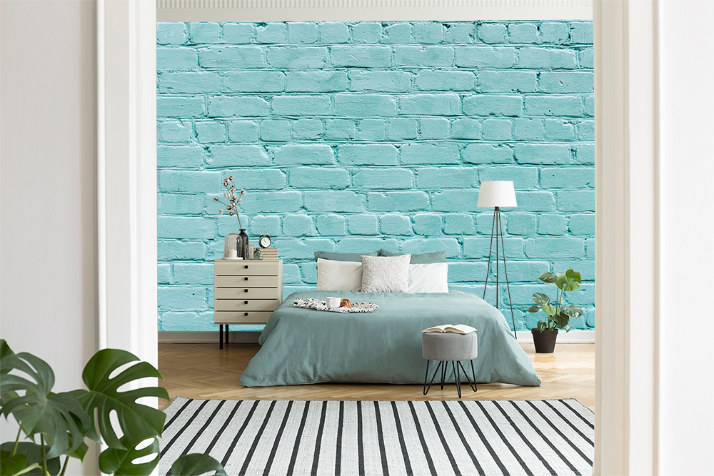 Preview: Vlies-Fototapete rustikale Steinmauer in Türkis (Pastell)