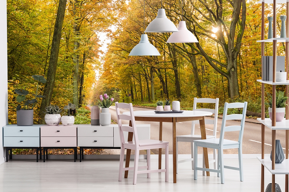 Preview: Fototapete Straße in einem Wald im Herbst