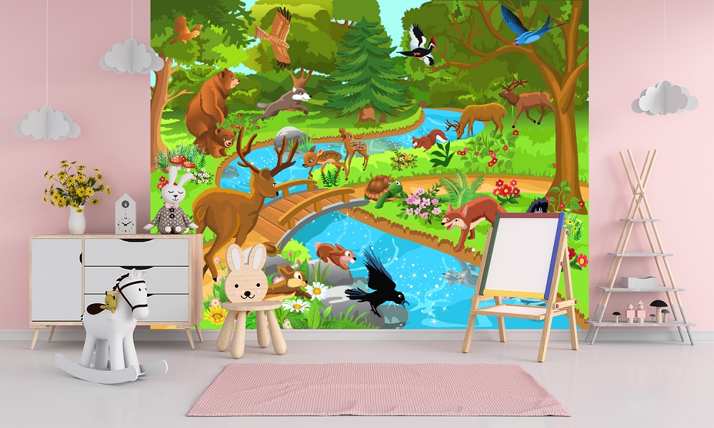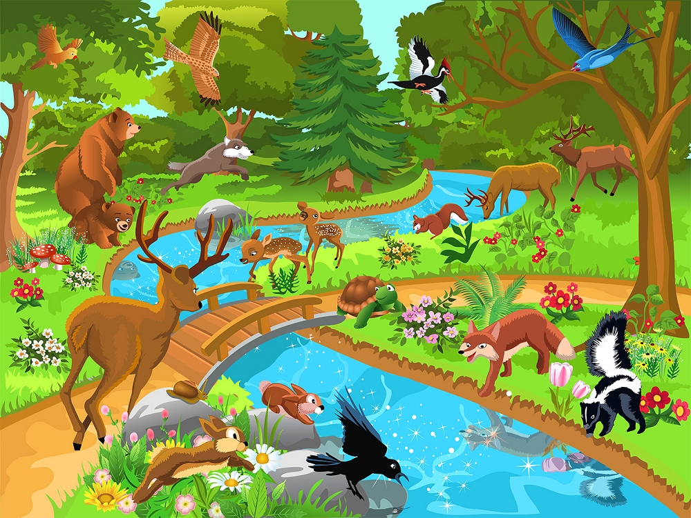 Preview: Fototapete Waldtiere an Wasserstelle