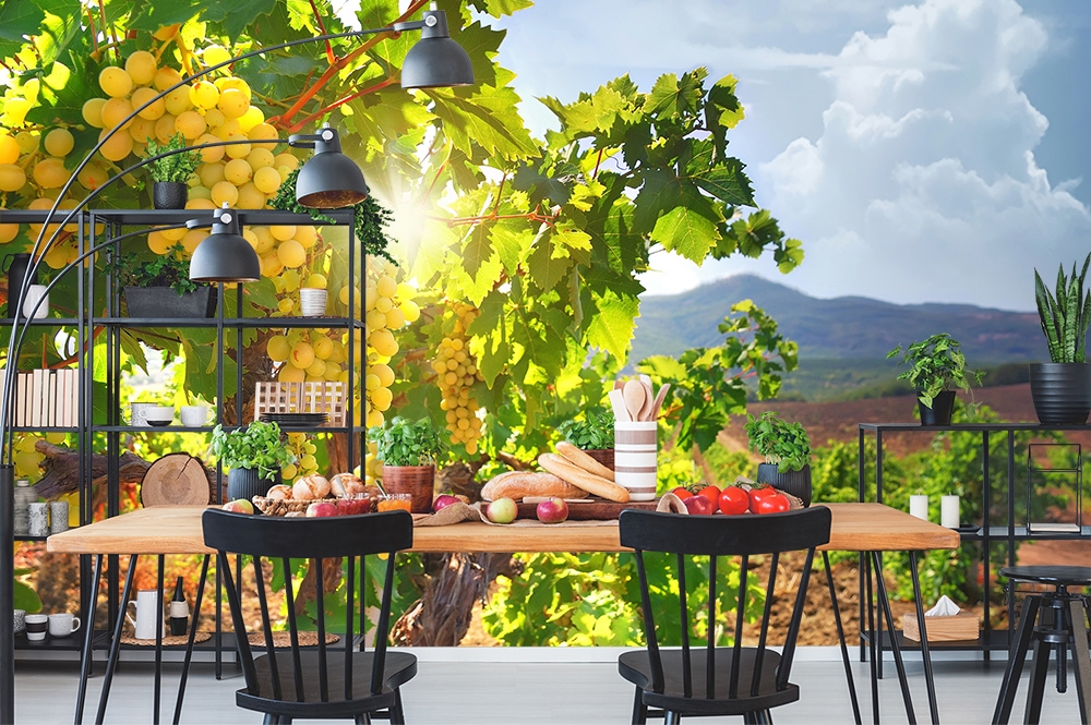 Preview: Fototapete weiße Weintrauben auf einem Weinberg