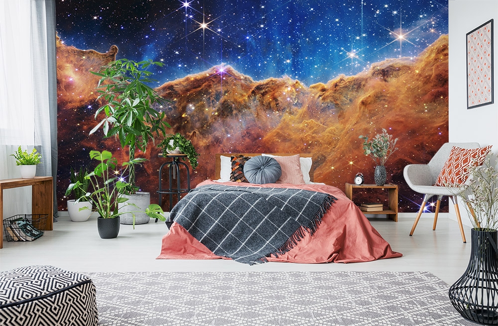Preview: Vlies-Fototapete Blick auf den ein kosmisches Cliff im Carina Nebel in einem Schlafzimmer