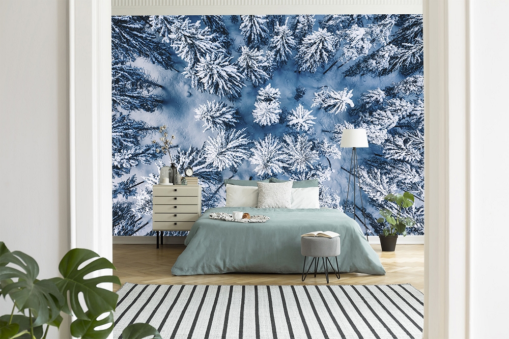 Preview: Fototapete Winterwald aus der Luftperspektive