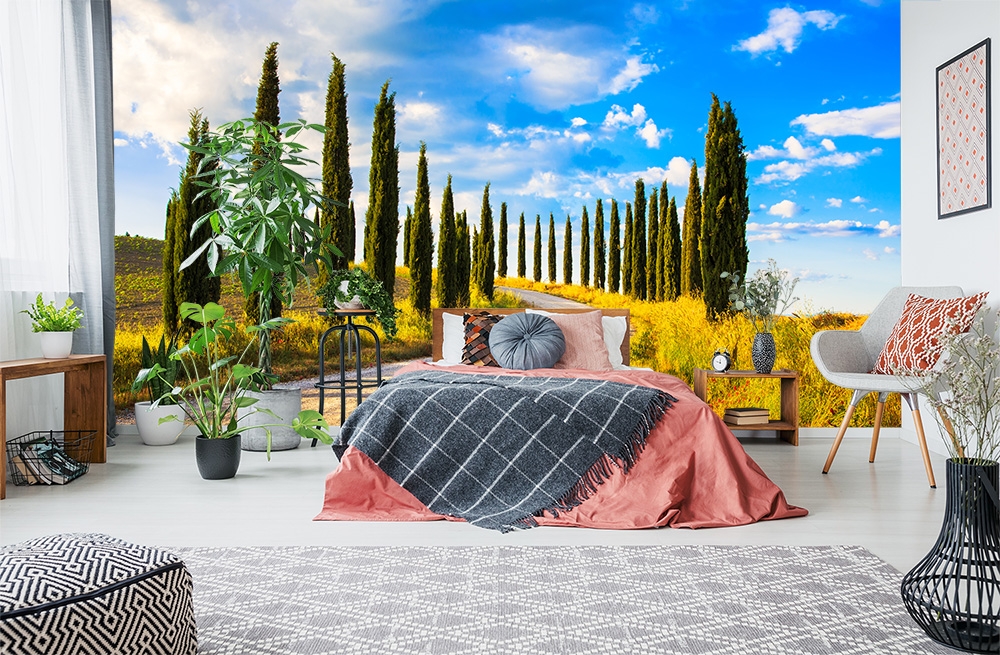 Fototapete Zypressen entlang eines Weges in der Toskana