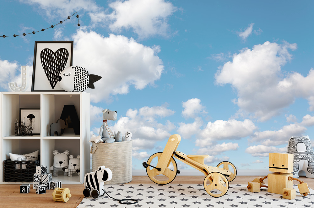 Fototapete mit kleinen Wolken am blauen Himmel