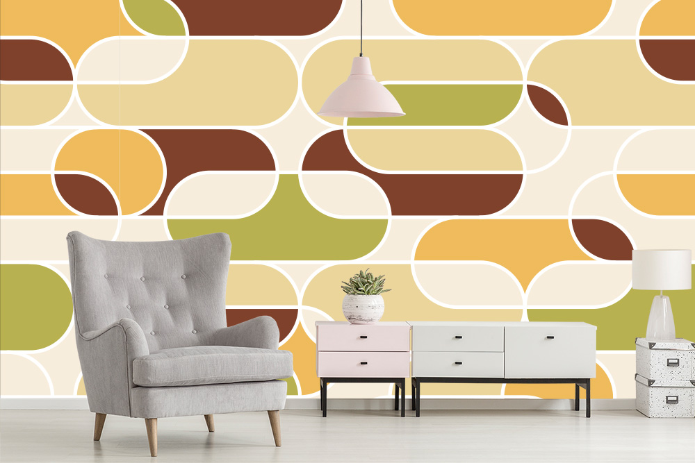 Retro-Mustertapete aus Vlies mit einem Design aus Ovalen in Grün, Braun, Cremefarben und einem matten Orange. Die Fototapete im Querformat bringt Ihnen den Charakter der 70er-Jahre in Ihren Wohnraum. Als Wanddekoration passt das Motiv zu typischen 70er-Jahre Farben, Möbeln oder Dekoration. Es lässt sich auch mit moderner Raumgestaltung kombinieren. Ein Mix aus mehreren Jahrzehnten ist in der Raumgestaltung ein kreatives Stilmittel. Das Design erinnert an eine Lounge oder ein Cafe. Die Tapete kann z.B. Ihren Platz in der Nähe der Chill-Out Area bzw. Relaxe-Ecke Ihres Wohnzimmers oder dem Schlafzimmer platziert werden. Nach einem anstrengenden Arbeitstag kann man voll und ganz bei einem Kaltgetränk mit Musik den Anblick dieses Designs auf sich wirken lassen und sich ein bisschen in das Flair der 70s reinversetzen.
