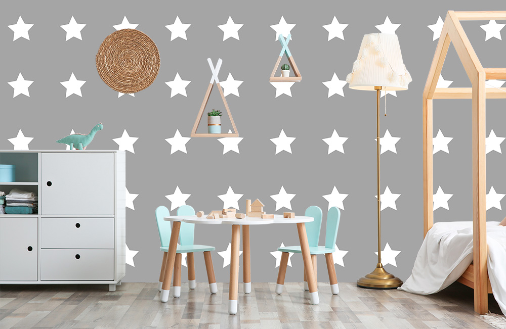 Fototapete mit regelmäßigen weißen Sternen für Ihr Kinderzimmer