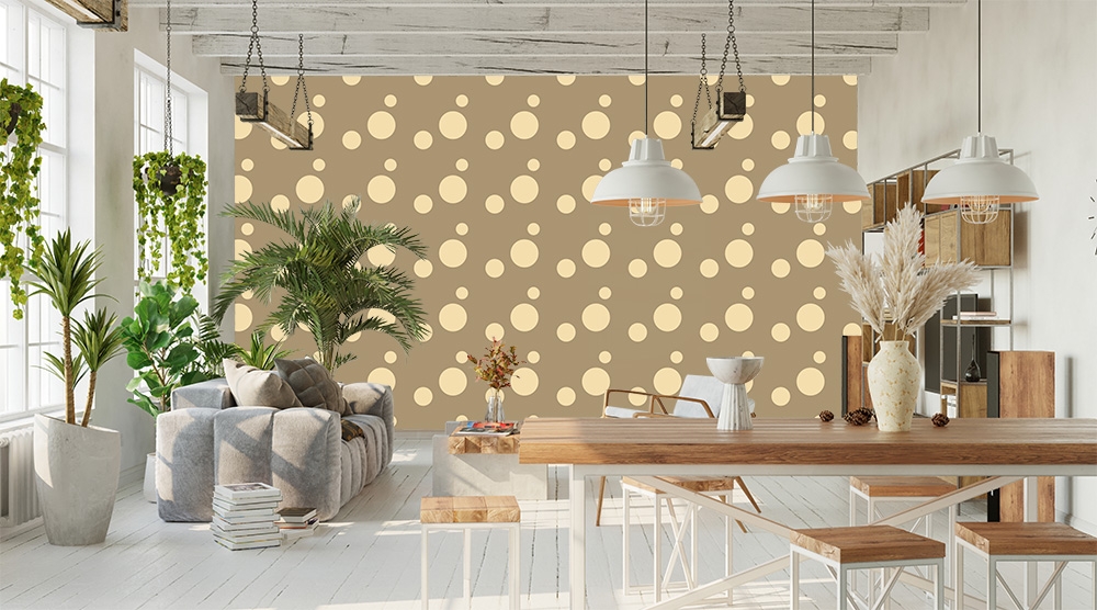 Punktetapete mit Punkten in Beige und einem Hintergrund in Cappuccino-Farbe