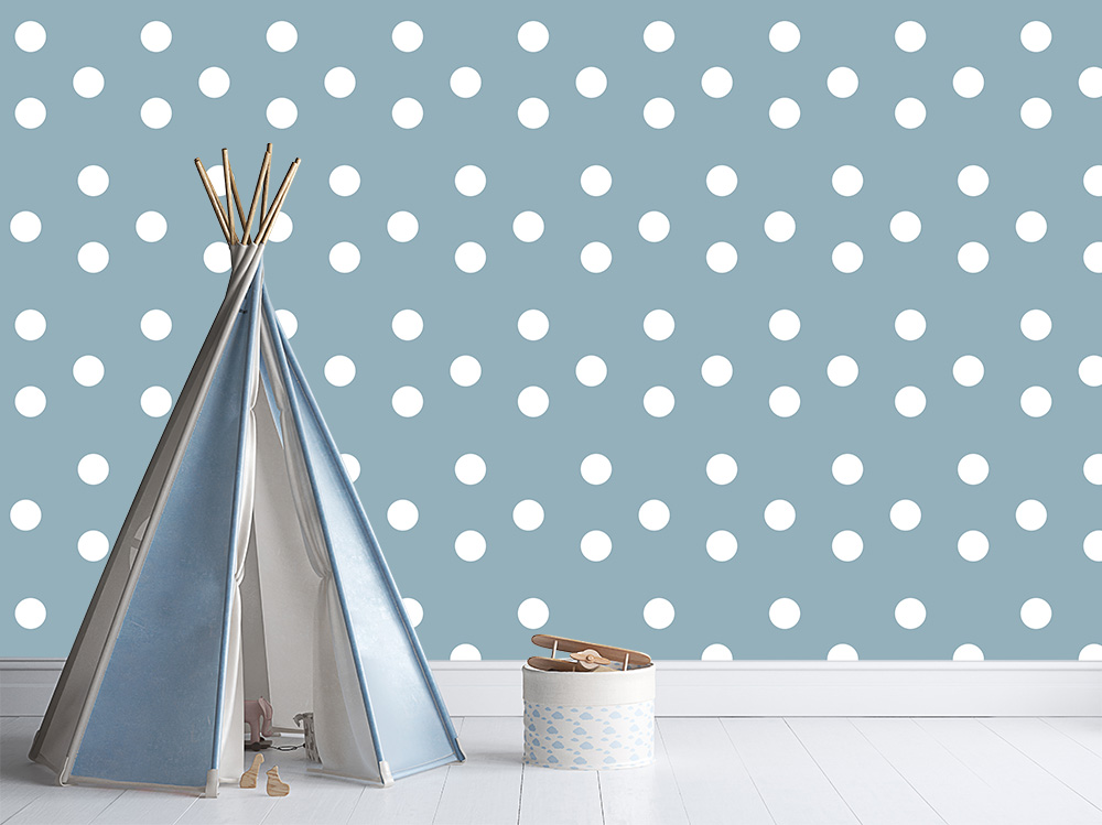 Kinderzimmer Punkte Tapete mit weißen Punkten auf blauem Hintergrund