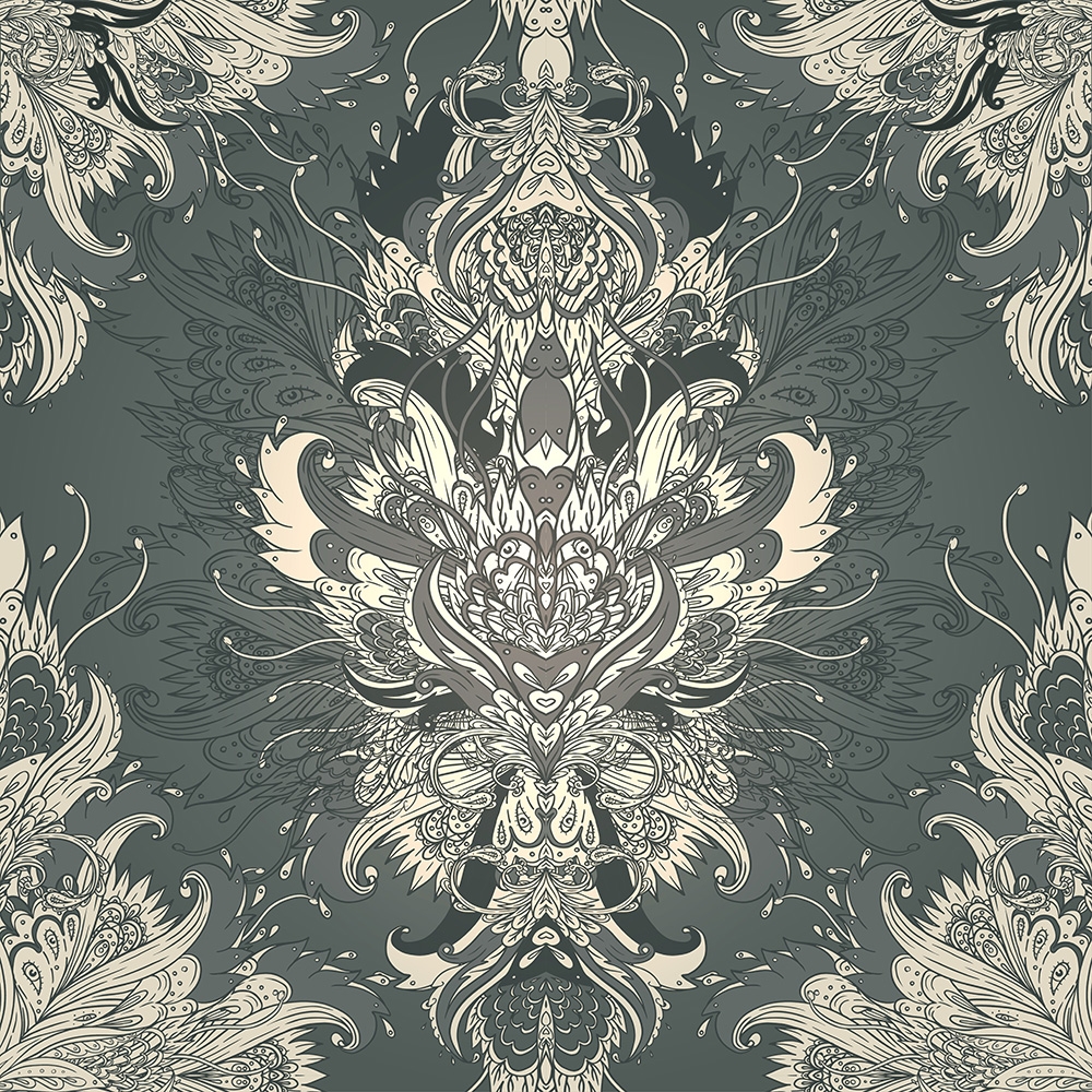 Preview: Vlies-Fototapete Barock-Ornament auf grünem Hintergrund