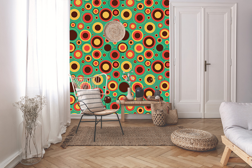 Preview: Vlies-Fototapete Kreismuster im 70er-Jahre Retro-Stil