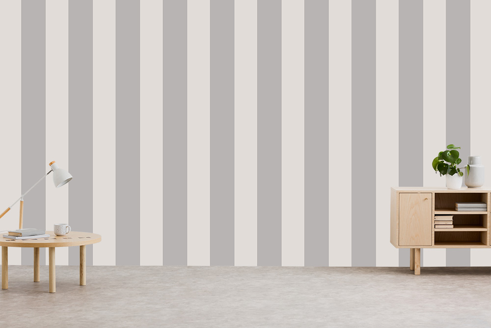 Streifentapete mit grauen und cremefarbenen Streifen