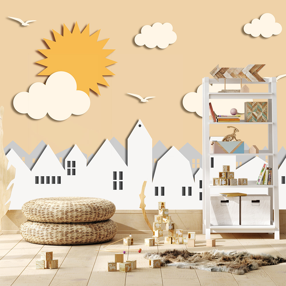 Kinderzimmer Tapete scheinende Sonne über einer Stadt