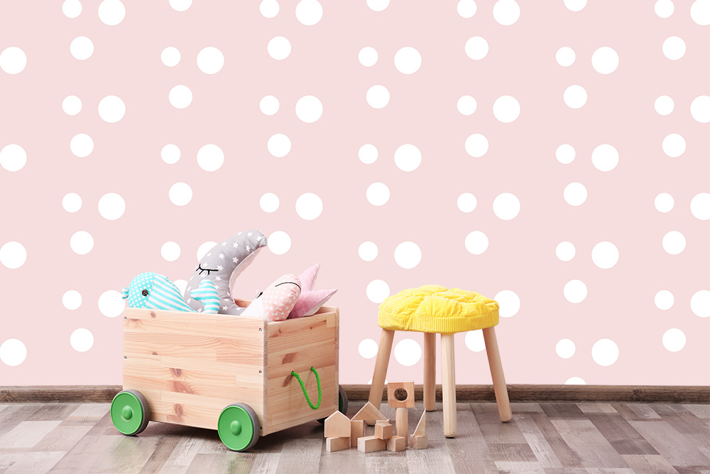 Fototapete in Pastell-Rosa mit weißen Punkten