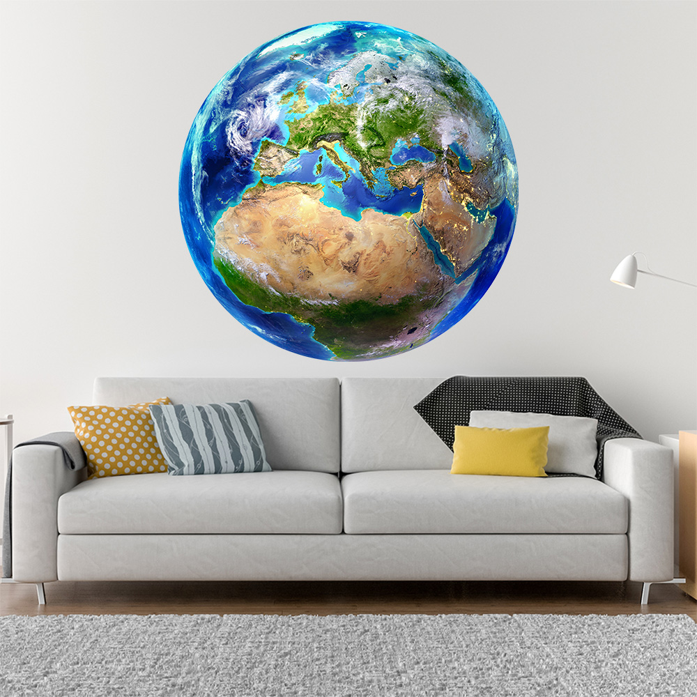 Die Erdkugel als hochwertiges Wandtattoo im Pixblick Onlineshop. Bestellen Sie diesen hochwertigen Wandsticker mit dem Motiv Erde. Der Blick richtet sich auf Europa und Nordafrika. Das Motiv ist sehr detailreich. Dank moderner Drucktechnologie sind die Wandaufkleber in brillanten Farben.
